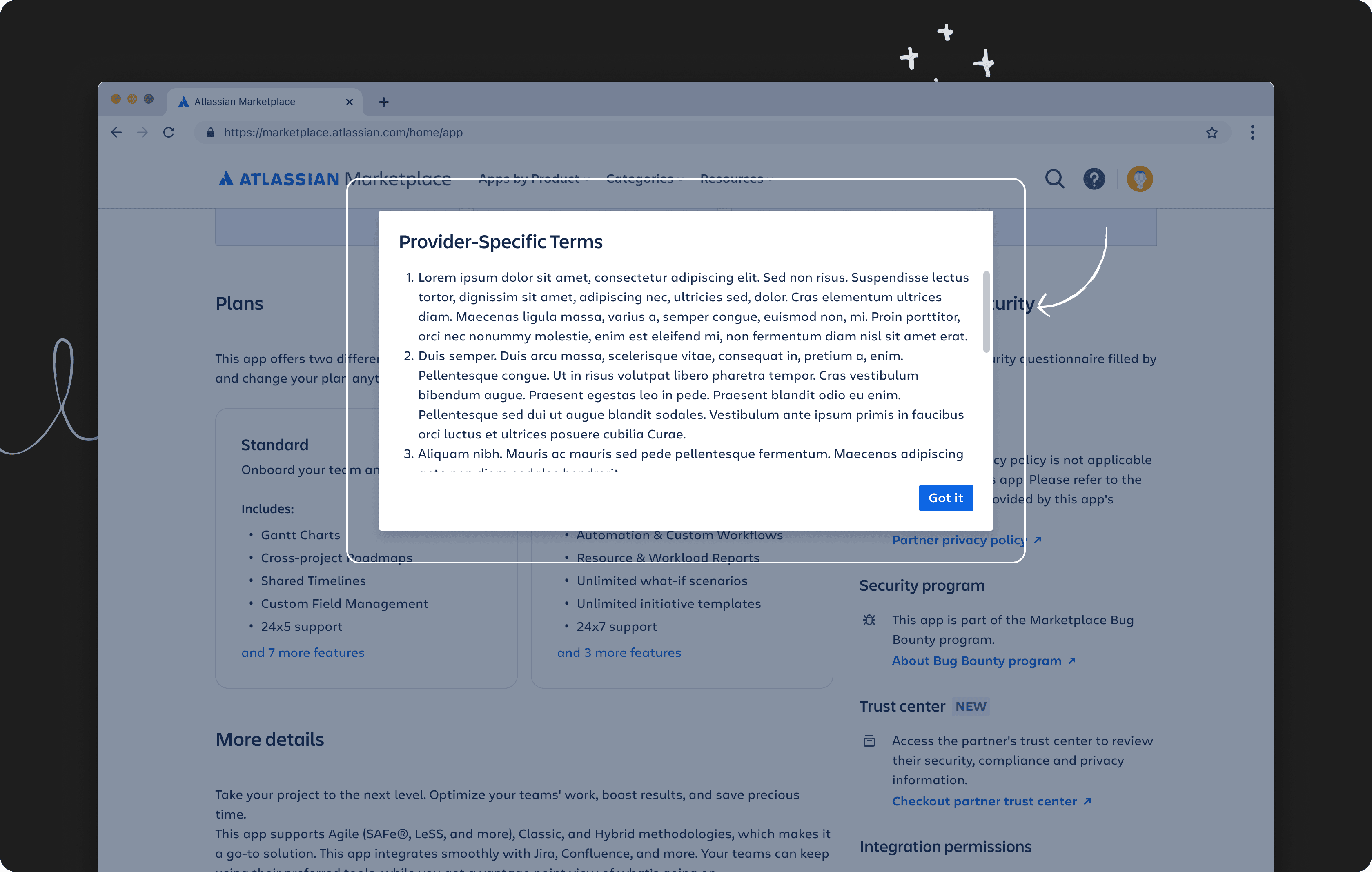 See how this might look on an Atlassian Marketplace listing page: