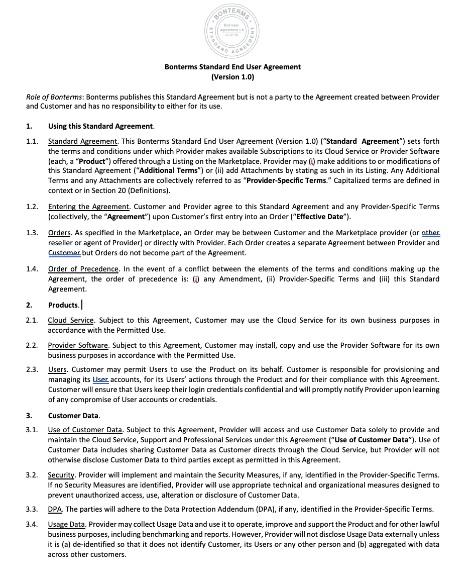 All Bonterms Standard Agreements are released under CC BY 4.0 (unless another license noted).