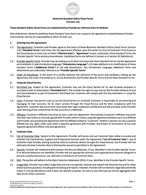 An online/website implementation of the Bonterms Cloud Terms for SaaS/cloud services providers.
